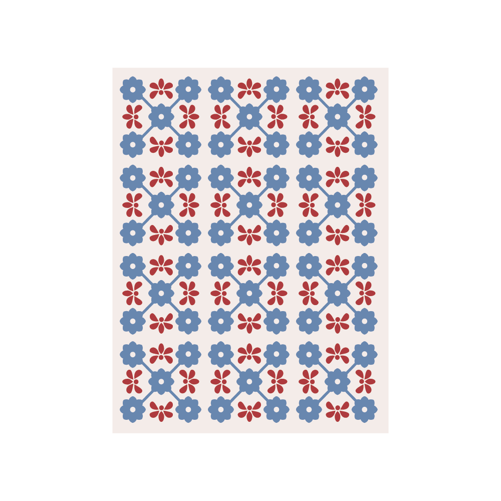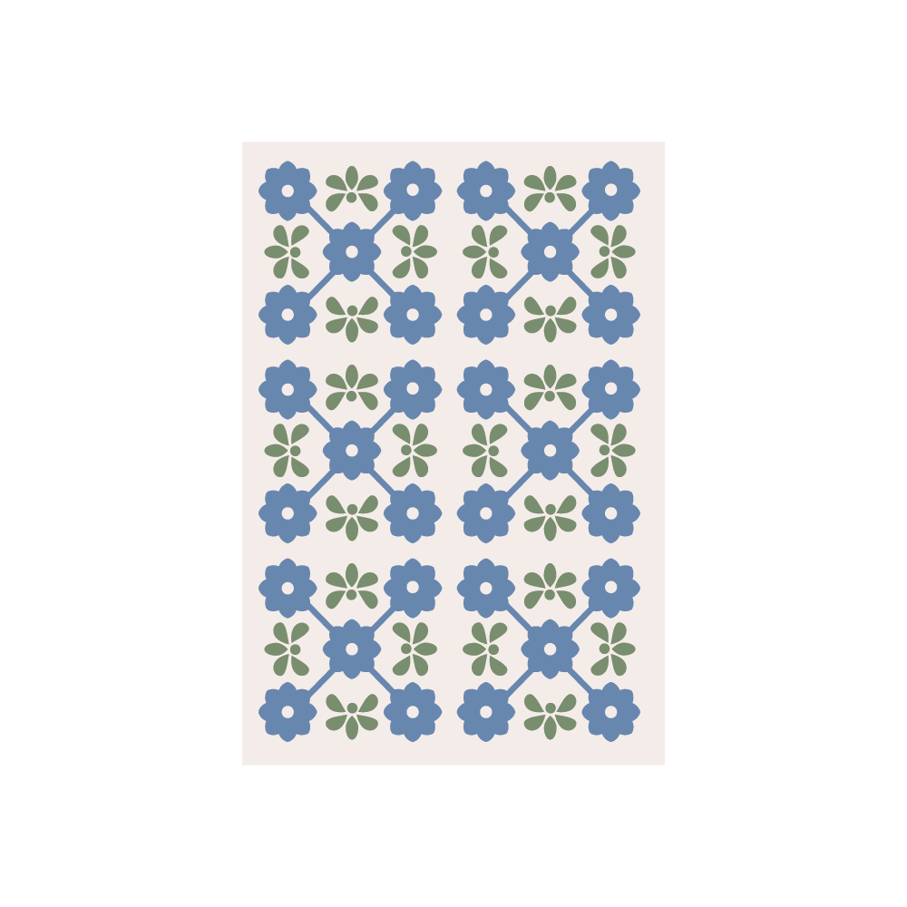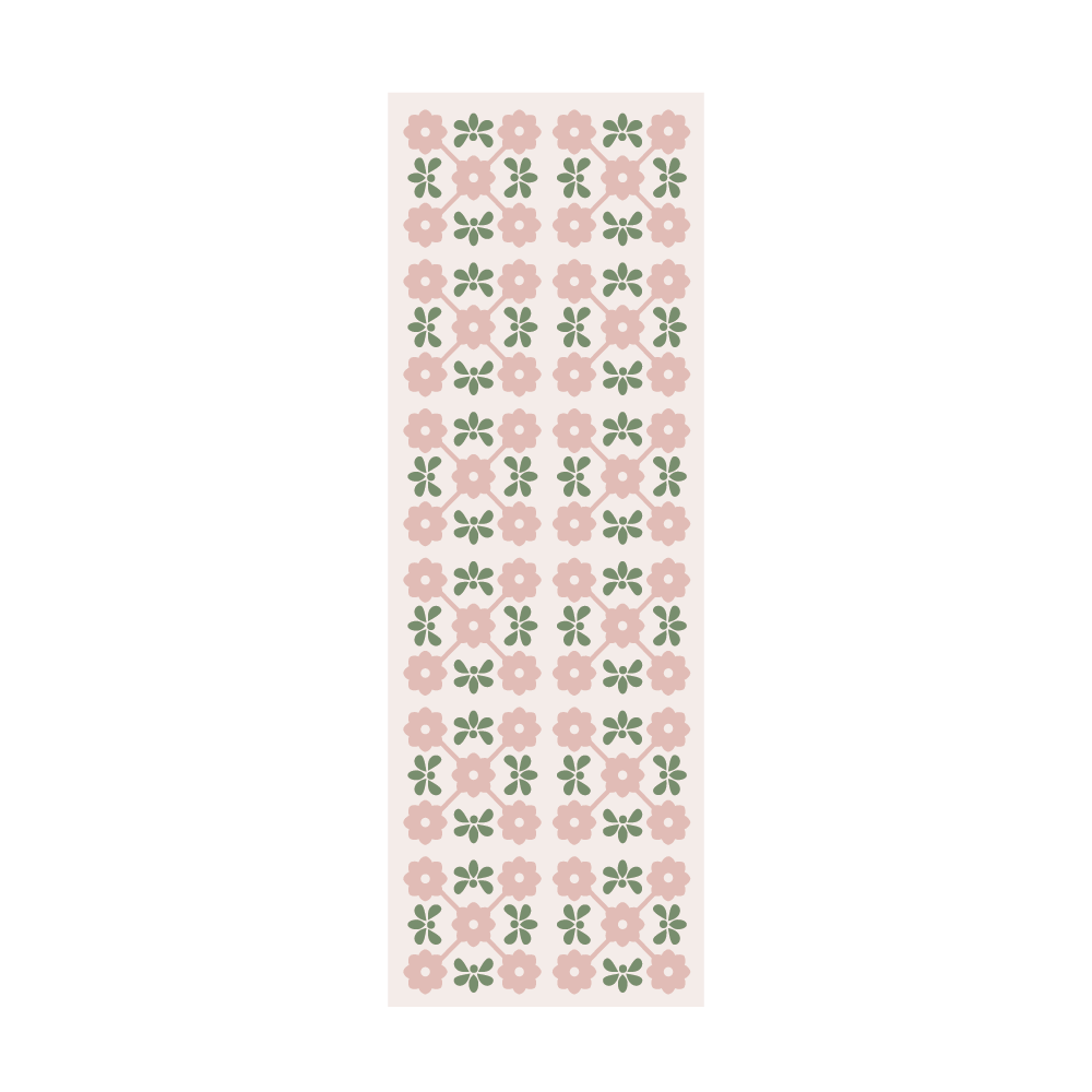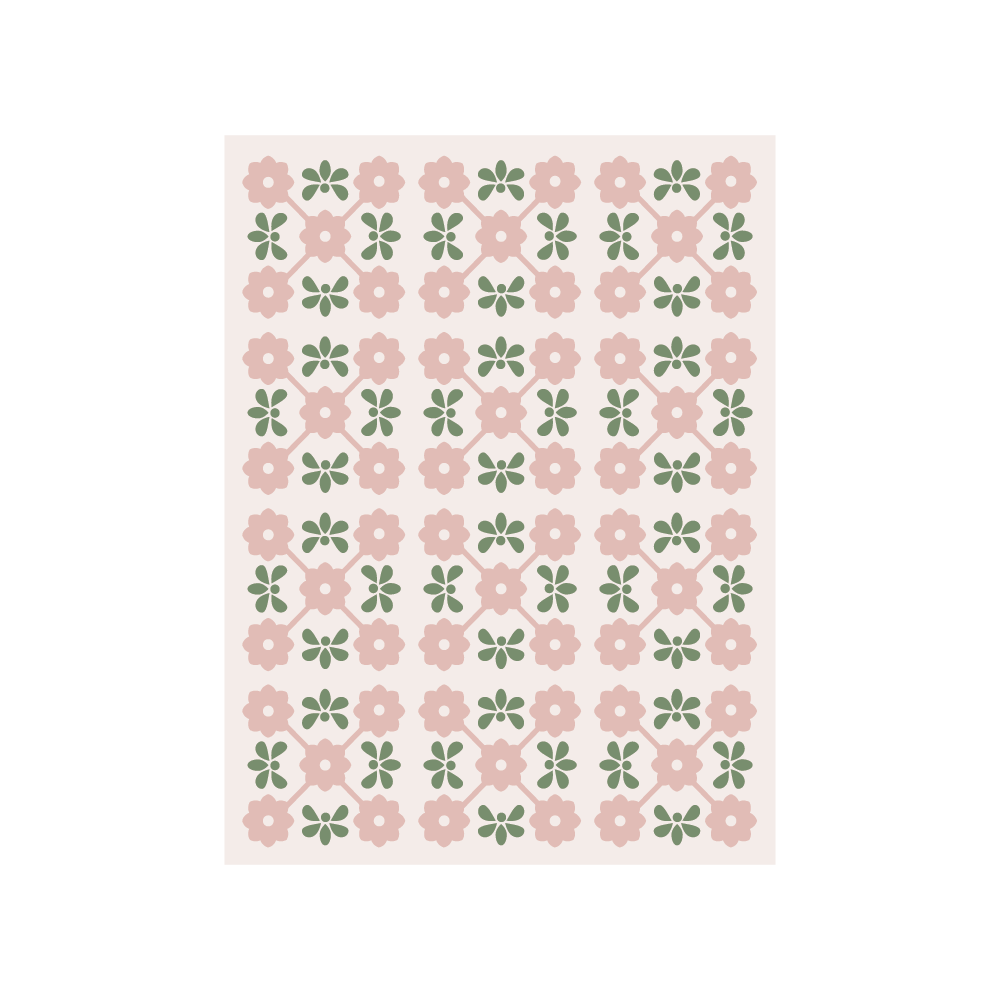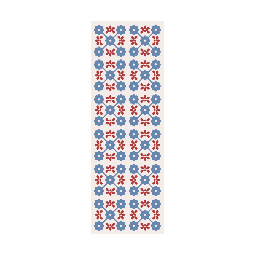The Emerson Rug is a batik inspired floral rug with a fun repeating tile like pattern. This rug is a flatweave rug.