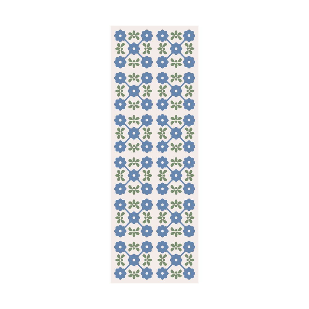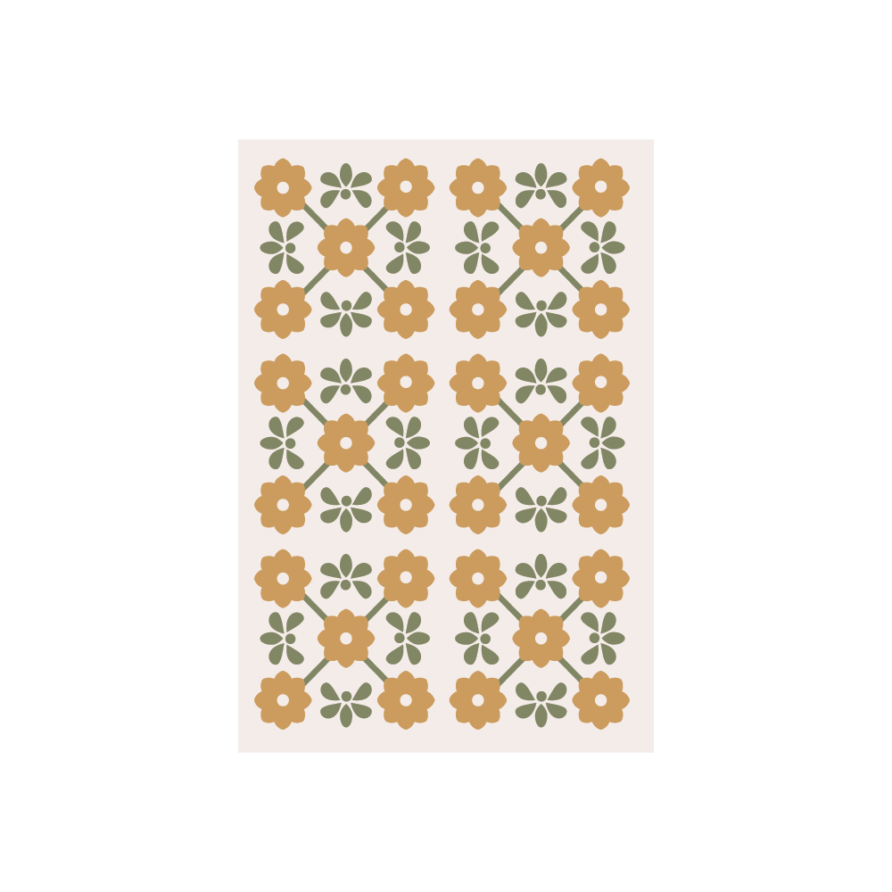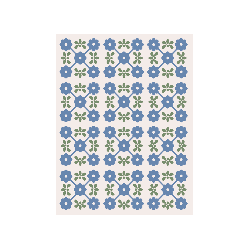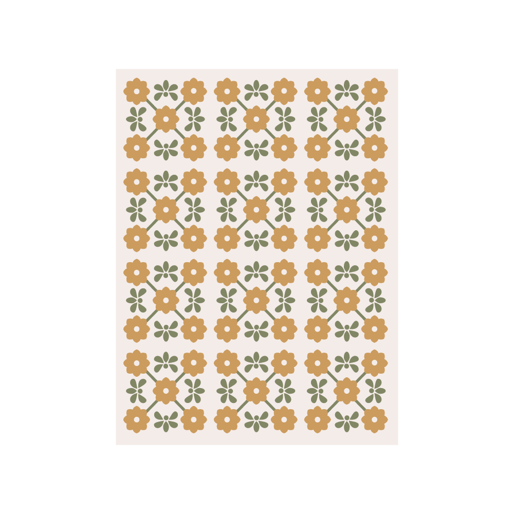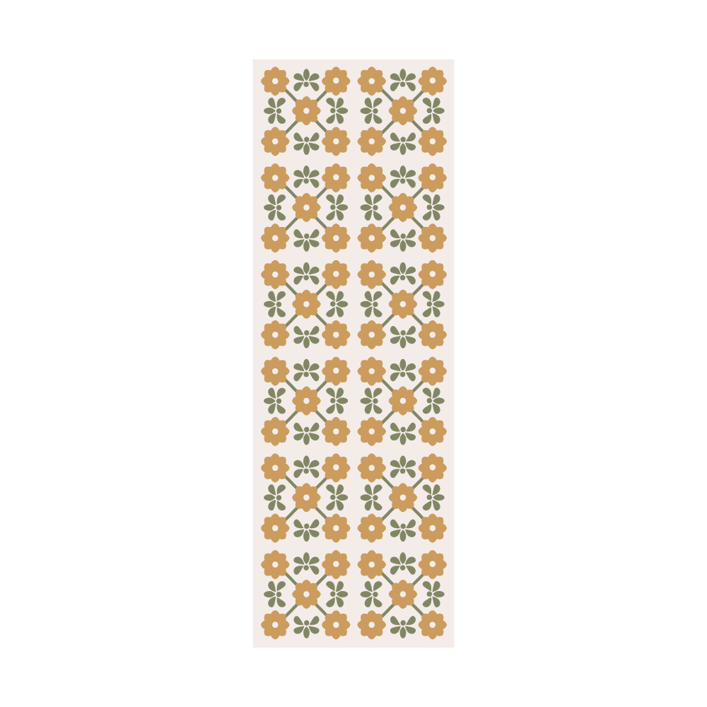 The Emerson Rug is a batik inspired floral rug with a fun repeating tile like pattern. This rug is a flatweave rug.