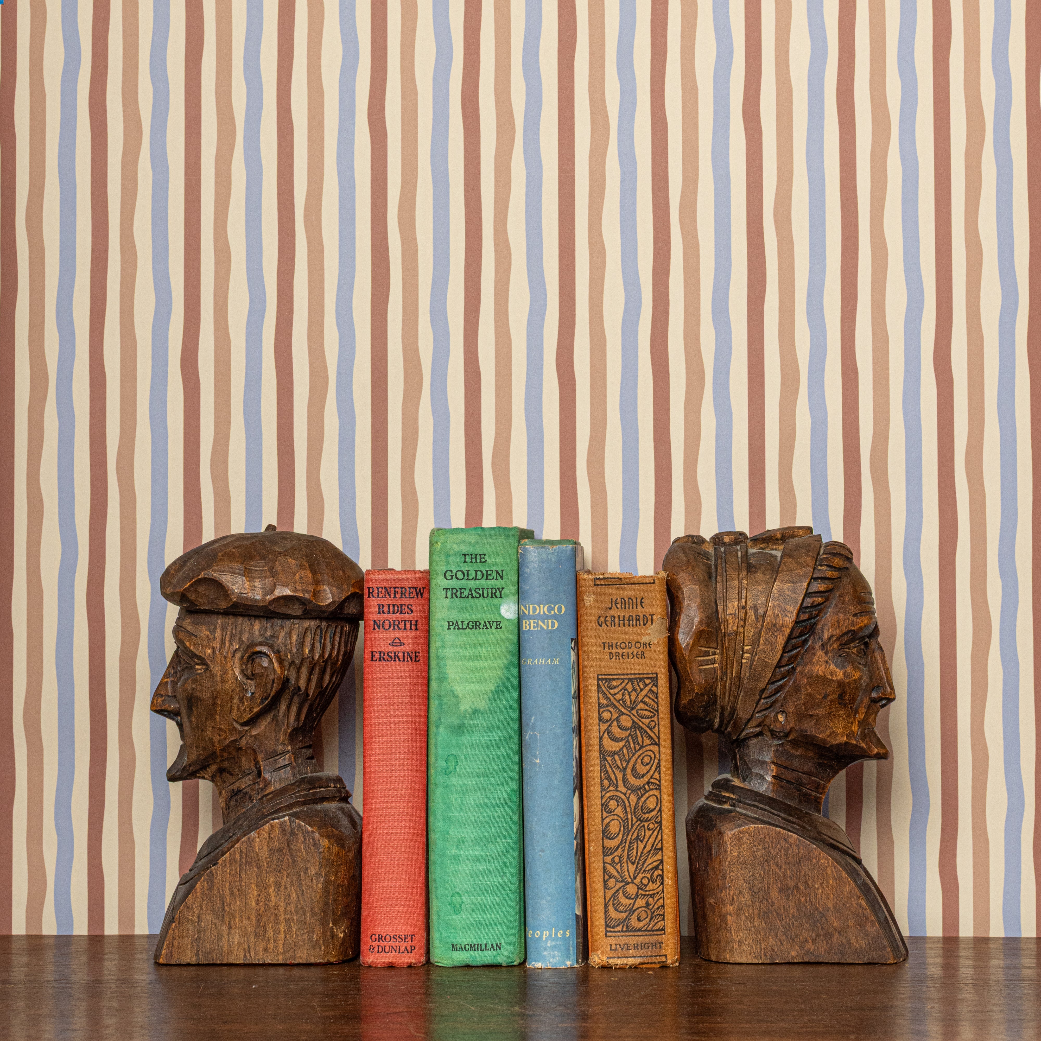 Can't Keep It Straight in Brick & Periwinkle Wallpaper