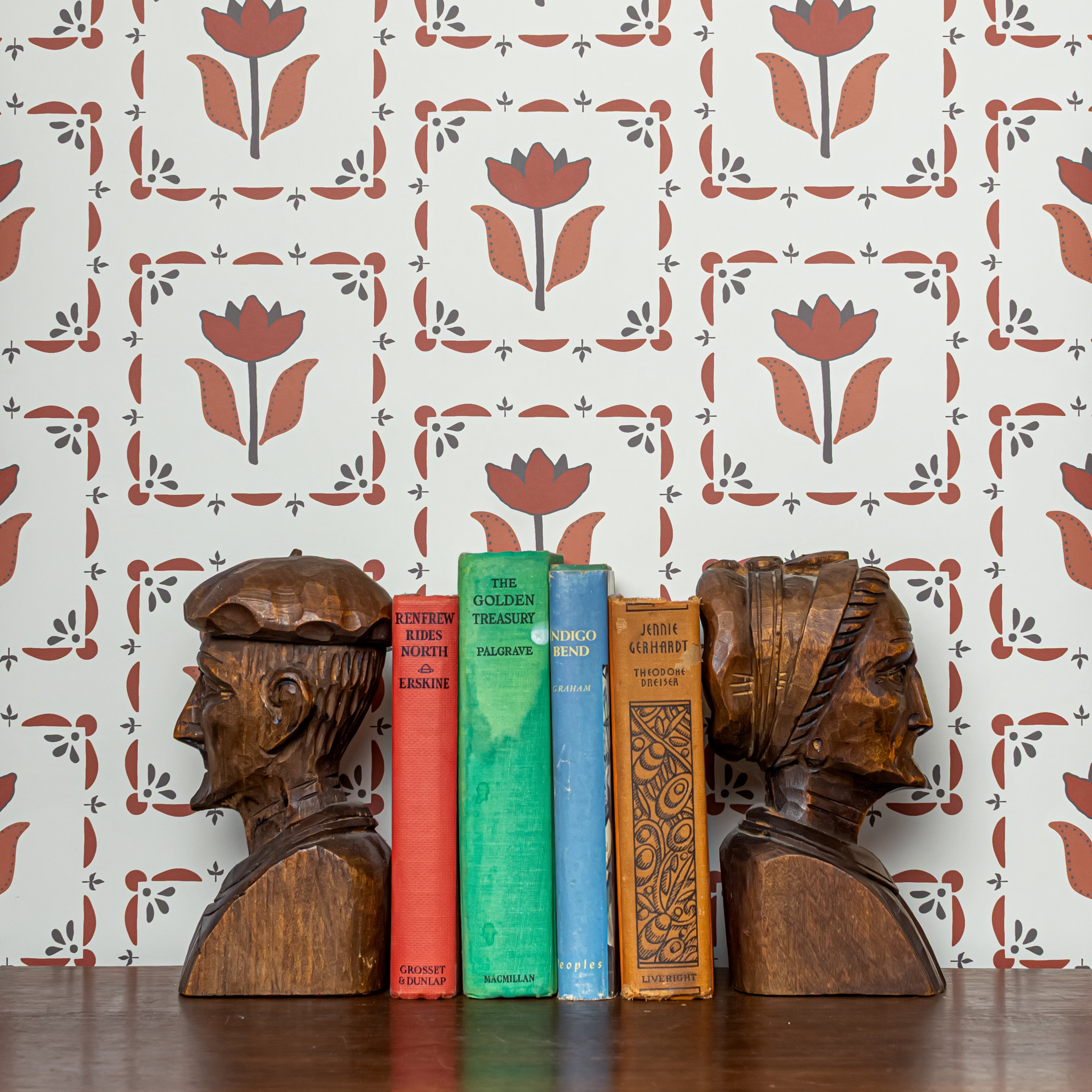 Say hello to sweet symmetry. Flora is a blooming grid of tulip motifs and leafy embellishments, equal parts cottagecore and checkerboard chic. She’s both delicate and structured, like a doily that went to design school. With colorways from earthy greens to nostalgic periwinkle, Flora has the quiet confidence of a pattern that knows she’ll look good in any room. Yes, even the laundry closet.