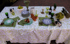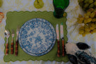 EXPERT NOTES Part of our Shimla Social Collection, the Bombay Blue Dinner Plate captures the whimsy of a dense jungle, intricately painted in a safari green with branching tendrils, lush leaves, and vibrant blooms. The enchanting foliage is displayed around the plate's border, creating a decorative frame and white center. If you look closely enough, you may even be able to spot a monkey hanging off a bough. Can be matched with Shimla Social coordinating pieces to create a complete place setting.