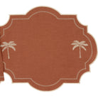 EXPERT NOTES Indulge in the opulence of a bygone era with our Cocoa Oasis Placemat. Exquisitely crafted from rich chocolate brown linen with beige embroidered edging and palm tree motifs on either side. Pair it seamlessly with our coordinating tableware to curate a captivating setting that transports you to a bygone era of timeless charm and the enchanting allure of our Vintage Palm collection