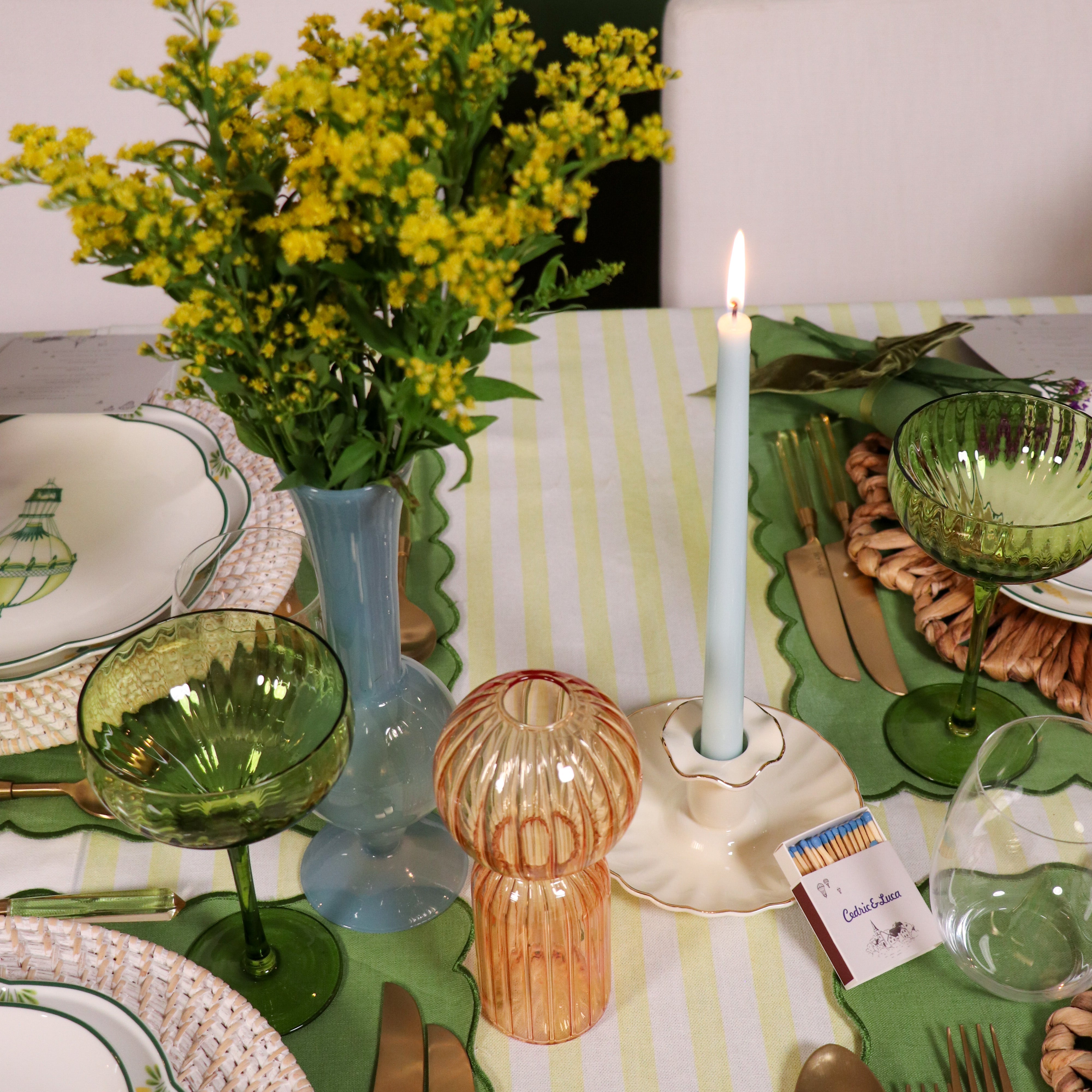 Light blue-footed vase with a bulbous base and elongated neck.